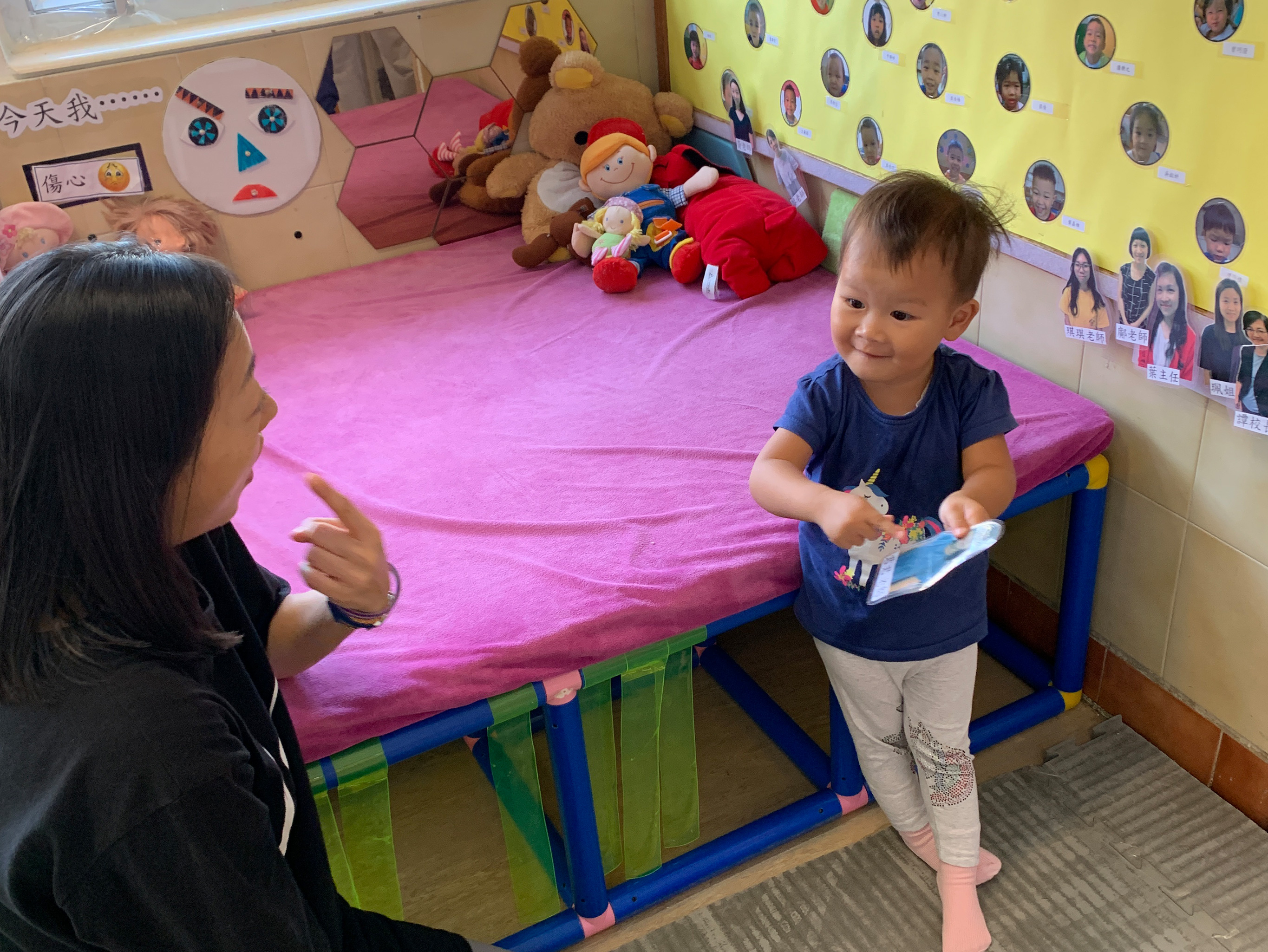 With a total area of 375 square meter, the school has rooftop area for outdoor activities provided by Home Affairs Department, three activity rooms, gross-motor activity room, music room, kitchen, children toilet, headmaster office, staff office, laundry, store room etc. In children activity rooms, there are multiple corners, including learning corner, emotion corner, life training corner, language corner, arts and crafts corner, storybook corner, exploration corner, doll corner, teaching materials corner, toy corner, panel corner etc. to help stimulate children’s learning interest and potential.